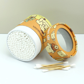 ก้านสำลีออร์แกนิค200ชิ้นกล่องกระดาษสั่งทำพิเศษไม้ไผ่ qtips ทำความสะอาดหูและเครื่องมือเครื่องสำอางสำลี